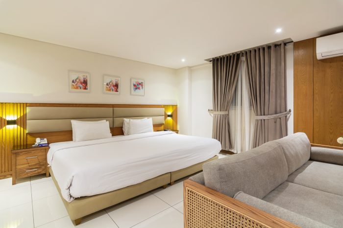 The Executive Suites feature a connected living and dining area for added comfort and in-house entertainment. The living area is equipped with an additional TV, a mini bar, and a sofa, while the dining area includes a table that seats four. Guests can also enjoy the following amenities.